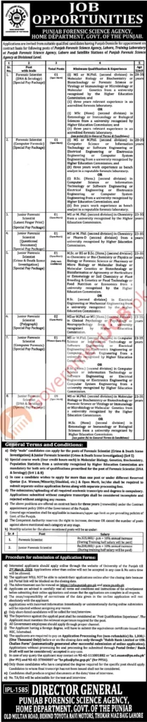 Punjab Forensic Science Agency (PFSA) Lahore Jobs